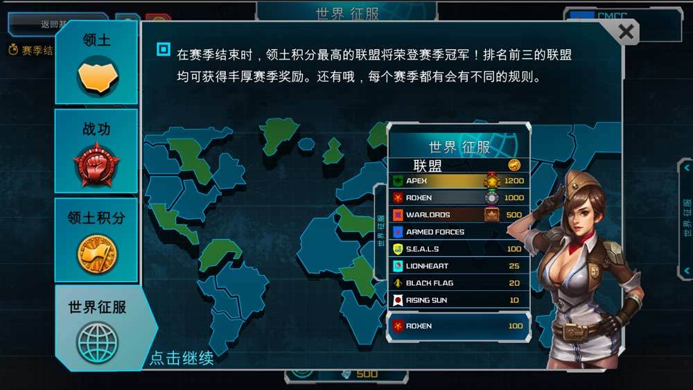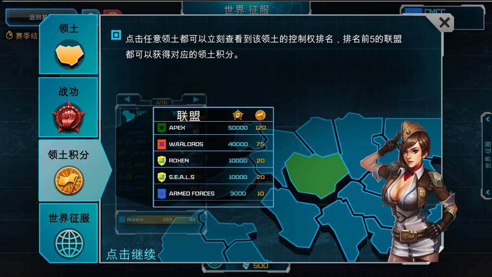 滑动屏幕右边,大家在下面的图目录中可以看出,这个赛季世界征服的领地积分兑换排名状况。