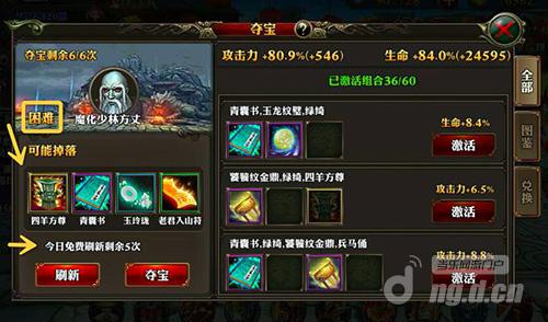 玩家在夺宝时需选不同类型的护宝BOSS考验。