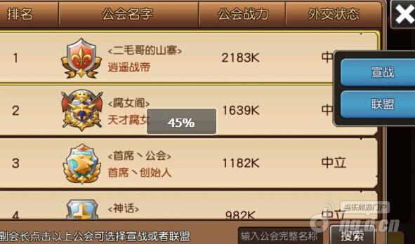 开启外交以后你将见到手机游戏大区全部公会信息内容,一式两份会生点一下公会可以选择宣战或同盟二种外交方式。