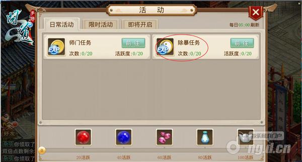 关键经验由来:师门任务除暴每日任务 加入门派门派且做完师门任务以后发现轻轻松松抵达20级,这时的你就已经创建本人团队知道了这款游戏的基本游戏玩法、主题活动引导等服务,现在是时候结识武林朋友了,这时候你将接受除暴每日任务,除暴目标就是修路上的第一个游戏玩家中间联机每日任务(也可以选择1人),大家可以根据联机作用获得武林好友的相帮,5人联机时主题活动满经验,同时又是20-30级游戏玩家关键方式。