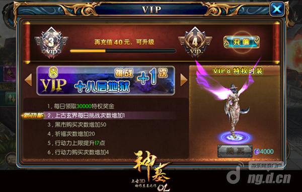 大R可以选择购买顶尖发展项目投资来打进VIP8,除开可以获得总共50000玄石的投入奖励,也可以通过长期投资选购VIP8悦享的权利服装,而且还能完全免费获得高端VIP增益值Buff,使你初期就可进出的即时PK的试炼场中突显霸者影响力。