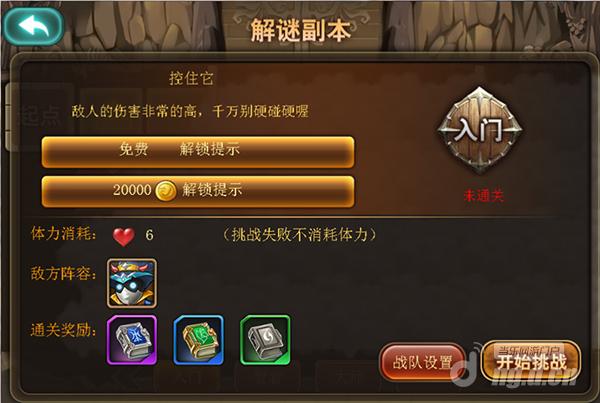与传统的大战关卡不一样,在解谜副本并没有要求玩家多强的人物水平,而是要正确英雄人物与技能搭配哦,绝大多数关卡都只有靠正确英雄人物组合才可以,要不然可能全军覆没的啦(奸笑表情)。