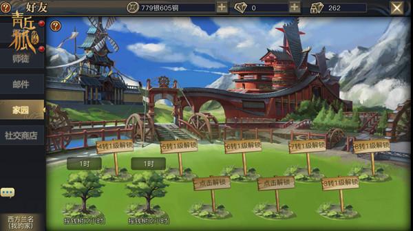 家园系统做为《青丘狐传说》手游休闲娱乐游戏玩法,每日玩家能够栽种招财树,平躺着把钱都挣了。
