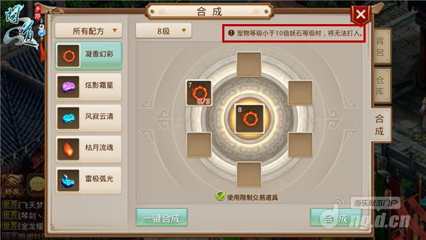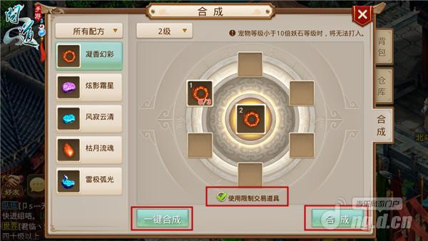 合成妖石的时候可以在下边选中是不是应用限制交易游戏道具,假如启用应用,那样合成出的妖石将会限制交易。
