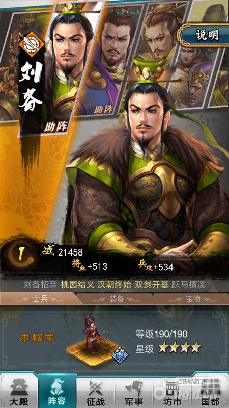 将血缘关系充沛的刘皇叔排出到助战1号位上,可以提高整体出战武将的血量,那是相当贴心!