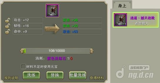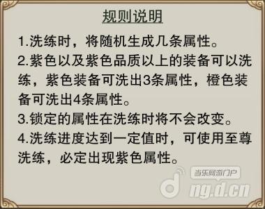 1、仅有紫色及紫色质量之上,而且穿戴在背上的武器装备才可以进行洗炼。