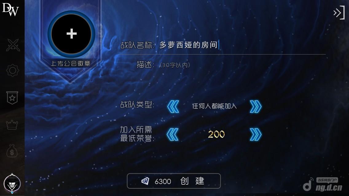 第二步设置战队名字,填好战队叙述,展现战队设计风格,呼吁更多人添加战队。