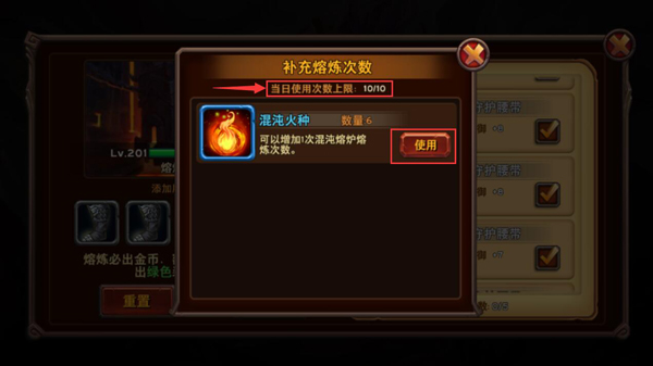 杂乱火种能增加熔炼次数,耗费一个则增加一次。