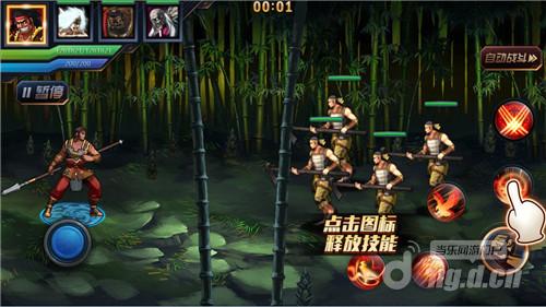 进到战斗界面以后,能用左下方的虚拟摇杆开展挪动(和非战斗情况一样),还能够点击显示屏右边的按键开展进攻或释放出来专业技能。