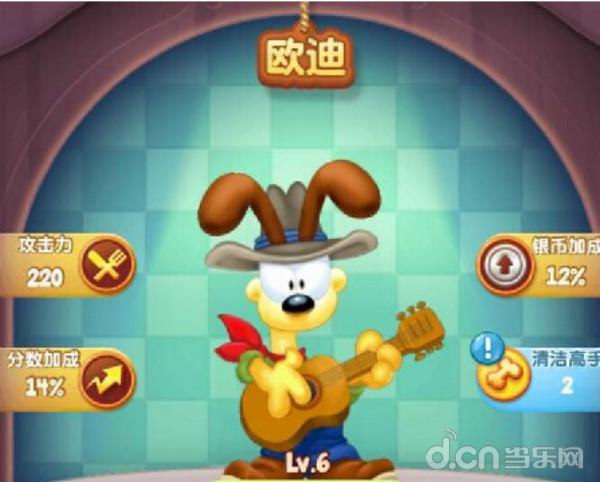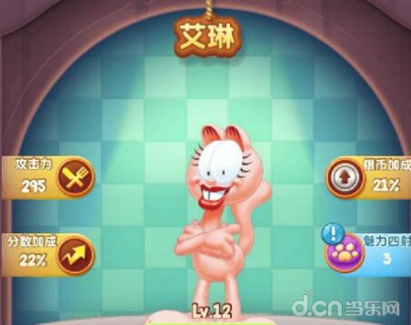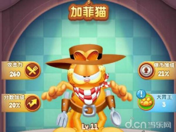 加菲猫是玩家会获得的第一个人物角色,各类标值都很平衡,游戏装萌第一人,颜狗优选、猫咪控优选,独特关卡得到三星之后还能开启新造型设计。