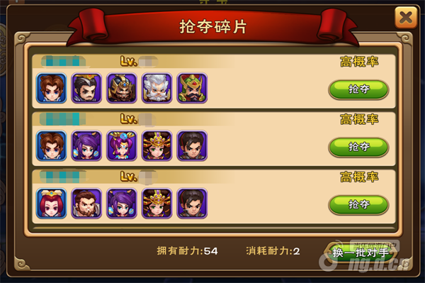 每一次抢夺均耗费2点体力值,当体力数值0时不能开展抢夺。