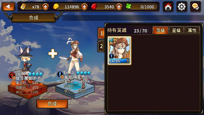 用两个加强 5,级别做到30,且星级和稀有度同样的英雄,即可开始加强,有概率合成更高一星级的英雄!