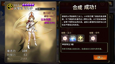 如用4星英雄“优质恶魔·乔乔”和“强盗·特莱西”,合成5星英雄“使者官·克洛伊”!