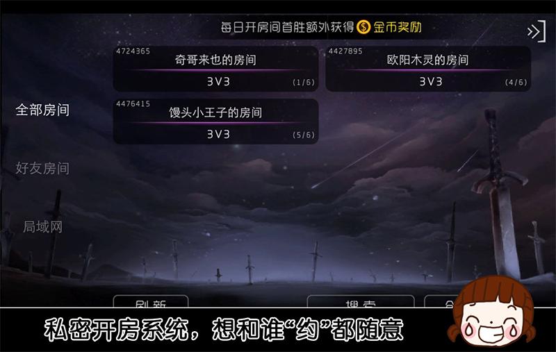 亮点二:随时约战的开房间方式好友聚会活动想跟小伙伴来一场3V3,各自组好队却获取到了路人咋办?