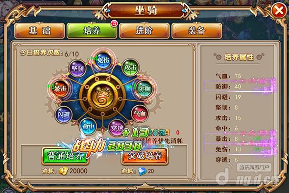 坐骑培养的形式大家可以自由选择,一种是耗费点卷的普通培养,另一种乃是耗费蓝钻的创新培养,不容置疑提升培养的属性提升会多一些,那如果有着坐骑培养液这一物件,就能免费进行一次提升培养了。