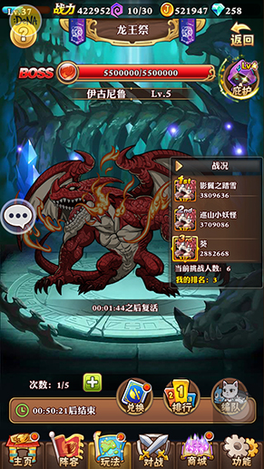 1、玩家在35级能够打开龙王祭系统软件, 龙王祭等同于全球BOSS团本,天天在规定期限对外开放,和国服玩家一起击杀任意发生的龙。