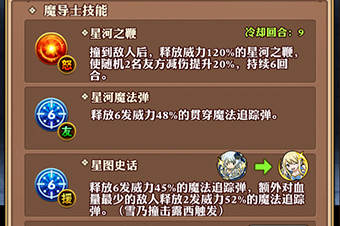 2、大专业技能:星图史话,被雪乃碰撞时,对血条最小的1名对手传出5发亮属性追踪弹,每发71%损害。