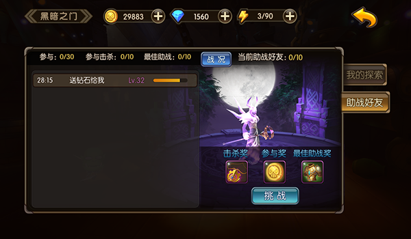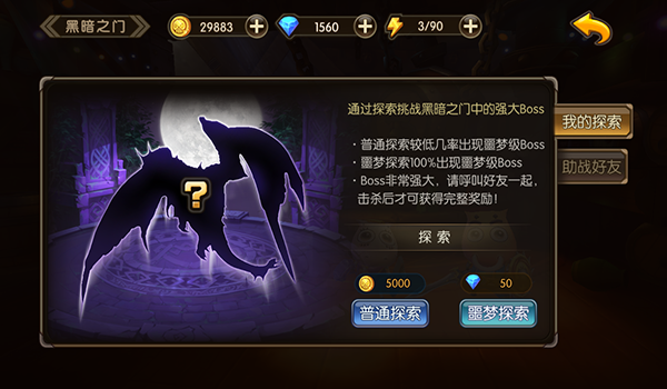 当职业队级别抵达13级会开启黑暗之门,在其中分成一般探索和噩梦探索两大类,一般探索耗费五千点卷,任意发生boss,噩梦探索必须耗费50钻,100%发生噩梦boss。