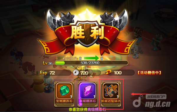 战斗胜利后结算界面里,翻出来的奖品很有可能包括装备碎片
