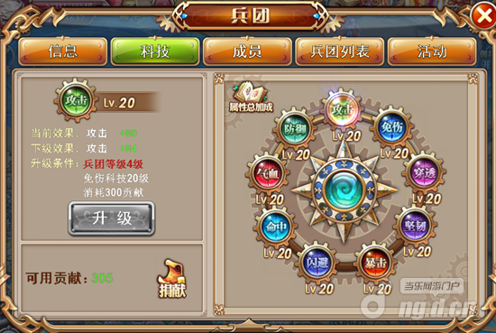 4.兵团奉献关键可用作兵团高新科技的提高,以此提高玩家角色的特性。
