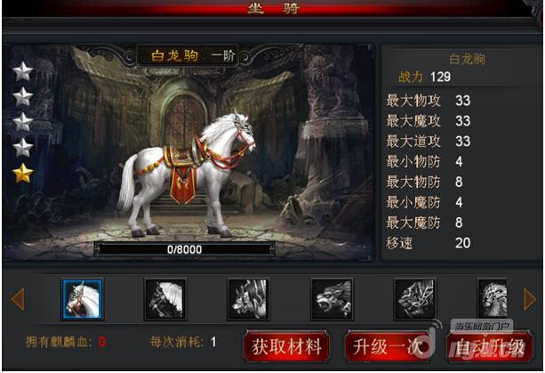 坐骑现阶段一共有9阶,每阶分4星,升阶满后就会全自动升阶。