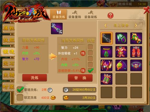 再洗炼出称心如意的属性以后就可以点一下更换来调节装备的属性了,是否非常简单?