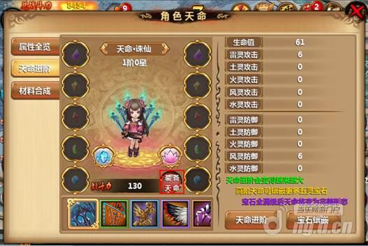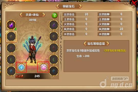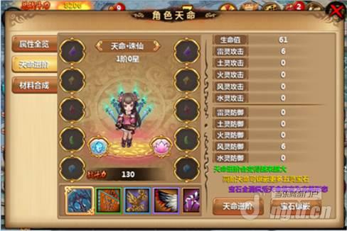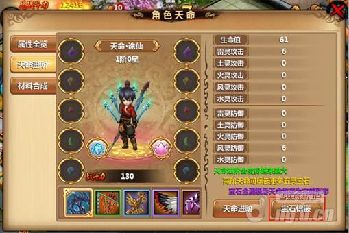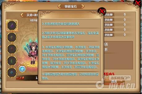 在天命属性中的括号里的绿色标值表示是五行相生属性,在宝石嵌入页面的表明(点击那一个墨绿色的疑问按键)内有表述的,这儿我就不多说了,立即图下了。