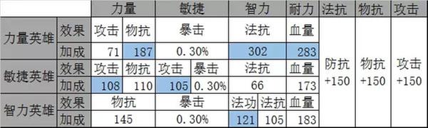 并且从下面的图能够得知对于不同种类英雄,宝石能够起到效果都是略有不同的。