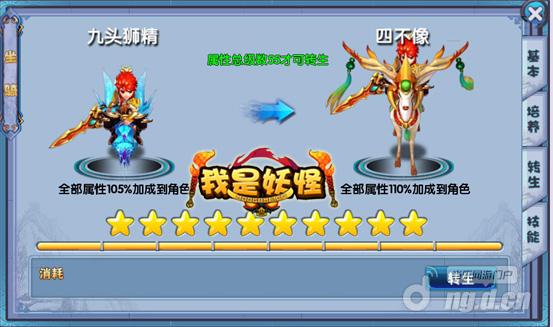 圣兽激话后需消耗圣兽精粹来升阶,满星之后才可以转生为圣兽品牌形象,转生消耗一定量的金币;