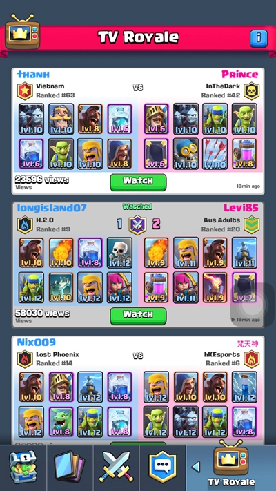 《部落冲突:皇室战争》的战斗界面非常简易,而且现在只有线上即时对战方式,即时模式匹配是1V1,与世界各地的玩家对战。