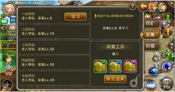 采集技能的学习与更新,和生活技能制做技能一起展示在技能服务厅中,大家可以随意选择2个技能学习。