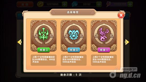 游戏玩家根据自身状况挑选相对应难度完成考验,难度系数越大爆出来装备更新材料等级也就越高。