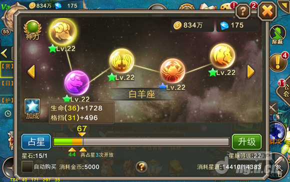 发展里边包括四个系统,依照开放级别,各是:原力、图鉴、星魂和灵器。