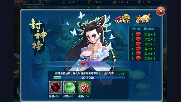 当用户级别提升到一定程度,“封神”系统软件便会开启,此刻就可以去塑造目前卡牌的好感度了。