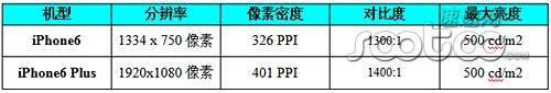 2款新 iPhone 都 并没有选用传说中蓝宝石镜面显示器,与1334 x 750清晰度的 iPhone6 对比,iPhone6 Plus 也是搭载了1920×1080清晰度全高清屏幕,屏幕像素密度达到401 PPI。