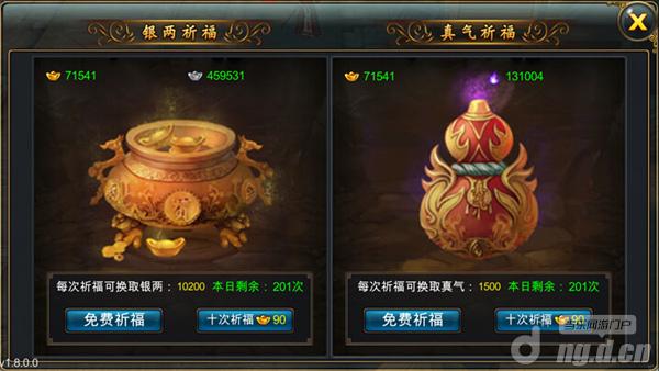 玩家能通过祈愿将背上的金币转化成银两或者真元。