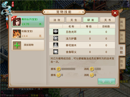 宠物的技能关键可以分为:法术伤害技能、与生俱来技能、天书技能及其宠物产品研发技能。