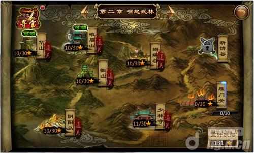最主要的PVE玩法,走江湖四十余处武林名地,考验不同类型的敌人,并探索宝箱,还可以结交美人共闯荡江湖。