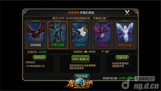 而信使质量的多少直接关系着玩家能够获得的奖励状况,质量从低到高分别为暗影蜘蛛、噩梦石像鬼、皇室狮鹫、湛蓝圣龙、崇高大天使,信使的质量越大则玩家可得到的奖励就会越多。