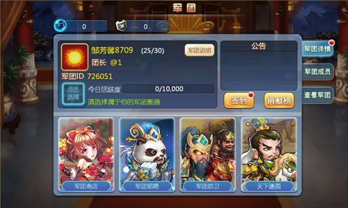 在《小小三国志》的军团页面中,各位主公只需点一下天底下涿鹿通道,就能与其它军团游戏的玩家开展车轮战。
