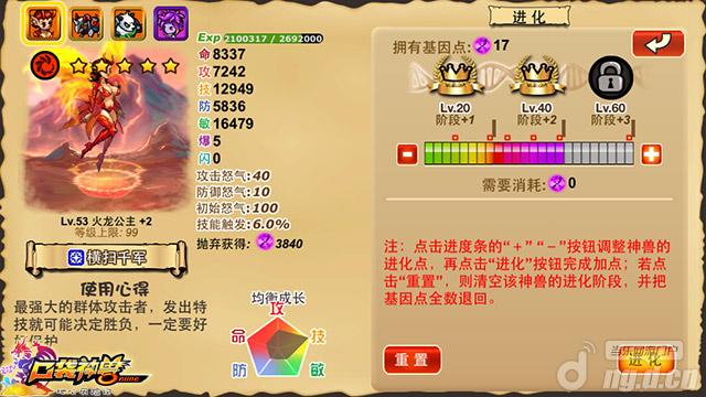 如果对以前的基因分派、神兽进化计划方案不太满意,就能使用这种重置的办法重新得到基因点。