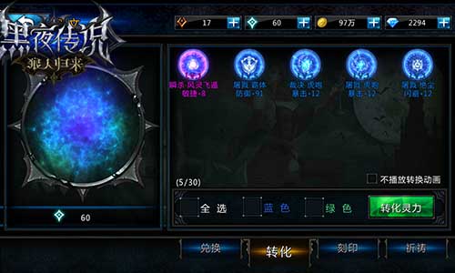 游戏玩家进入“转换”网页页面,没有用的符文能够转化成灵力提高符文更新,大家可以自由选择符文来转换灵力,不一样质量的符文转换的灵力总数也是不一样的。