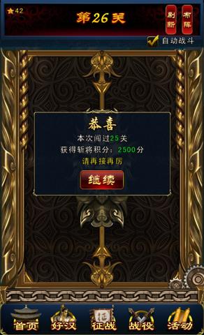 “过关斩将”游戏玩法是专门为考验同屏其他玩家所设定的特点系统软件,玩家既能借此机会一窥别的玩家的好汉组合构思与阵型方法,提高己方整体实力的同时也能取得急需的好汉觉醒原材料,进一步强化己方好汉,做到“一箭双雕”的效果。