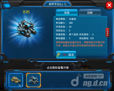 盔甲平台能够放置、更新、维修盔甲单位,并可以更新盔甲单位专业技能。
