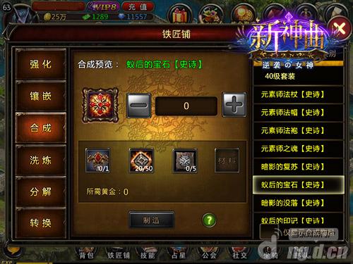 需要合成出史诗装备,游戏玩家要提前准备相匹配档次的紫色套服、橙色装备碎片、传说之石。