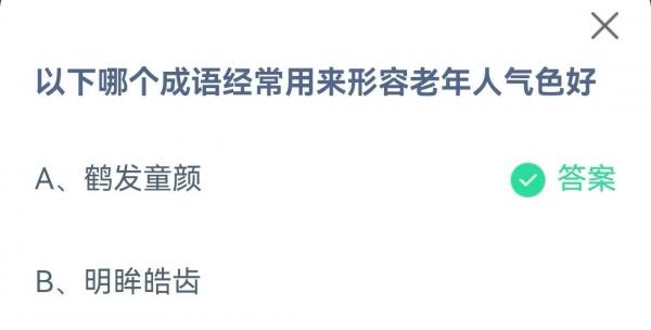 2023支付宝蚂蚁庄园4月13日的题目已经更新了,今天的题目为:以下哪个成语经常用来形容老年人气色好?鹤发童颜还是明眸皓齿呢?正确答案是什么,可能很多小伙伴可能还不太清楚。下面小编就为大家带来了正确答案分享,希望能帮助到你。