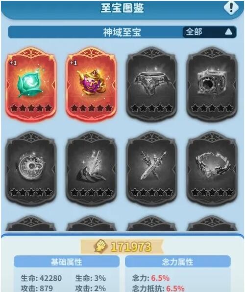 2、上古至宝内至宝的属性适用于全英雄(类似图鉴激活的加成),属性分为基础属性,被动属性,觉醒属性,效果各有不同