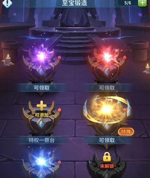 4、 锻造至宝的材料玩家可以通过消耗星砾(获取:通过上古之地,周卡特权,礼包获得) 在祭台内消耗时间进行锻造,锻造完成后可以获得稀有道具材料以及至宝