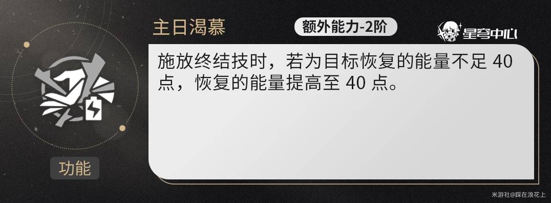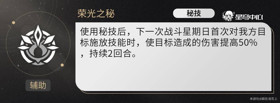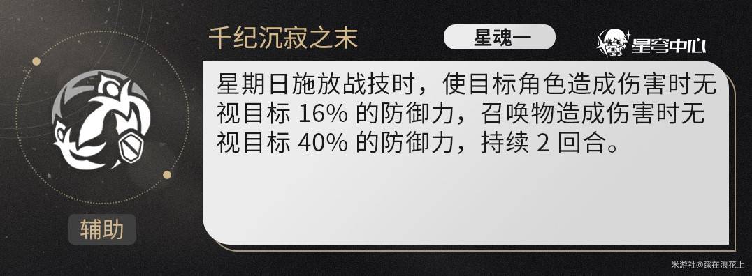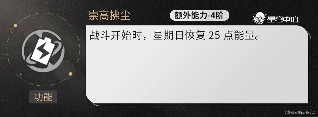 战斗开始时提供25能量,使周日可以在三大深渊中使用一次战技后开出大招,提高星期日在日常活动中的体验。