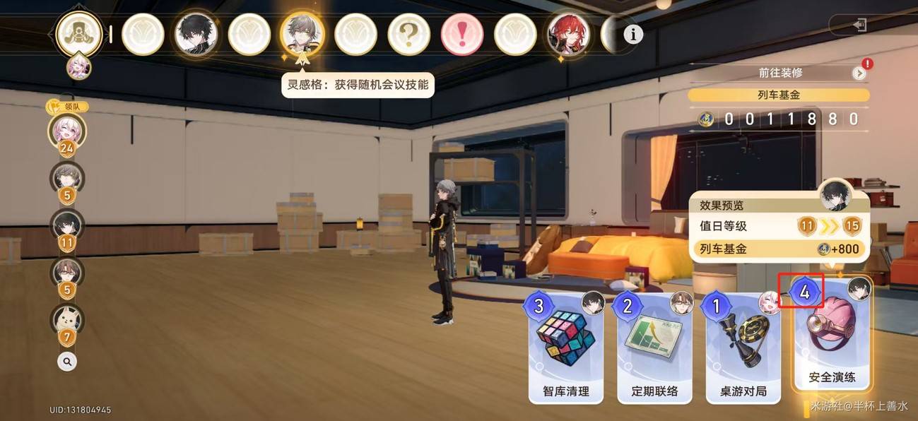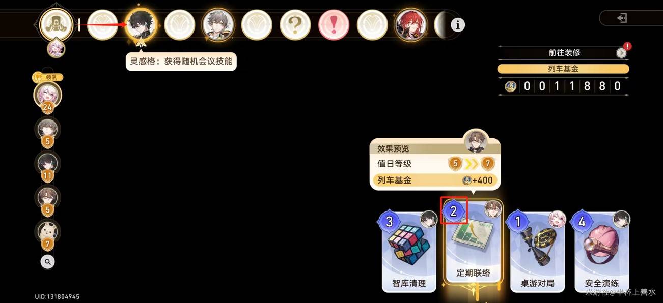 而我们选了丹恒,就会前进4格,同时丹恒的值日等级提升4